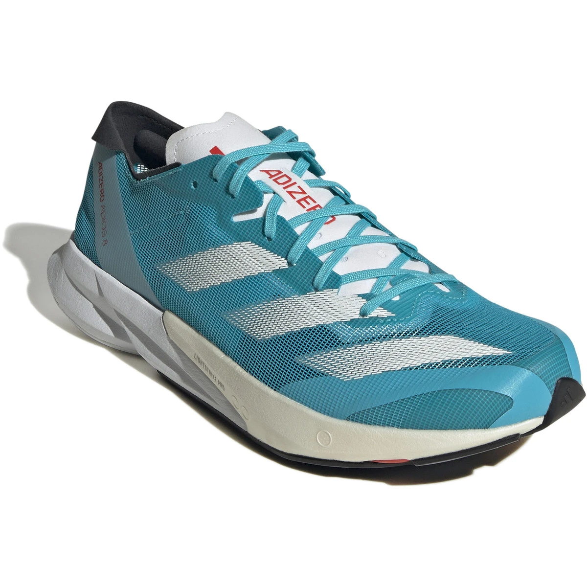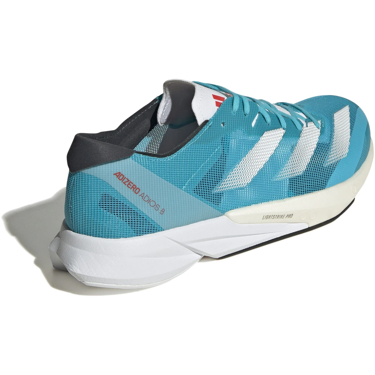 Der adidas Adios 8 ist dank des ultraleichten Mesh-Obermaterials und der superleichten und superelastischen Lightstrike Pro Zwischensohle leichter als je zuvor. Mit dem neuen Adios genießt du außerdem perfekte Steifigkeit mit TorsionRODS, die dir eine schnelle Freigabe und blitzschnelle Übergänge Schritt für Schritt ermöglichen.