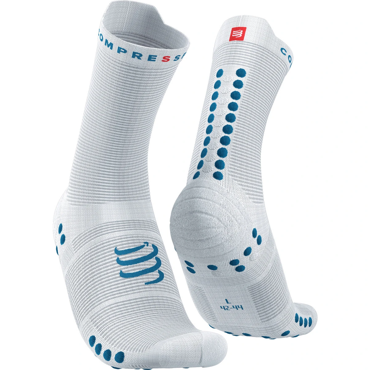 Die Compressport Pro Racing Socke v4 Run High bietet überragenden Komfort, verhindert Blasenbildung und sorgt für optimale Belüftung beim Laufen.