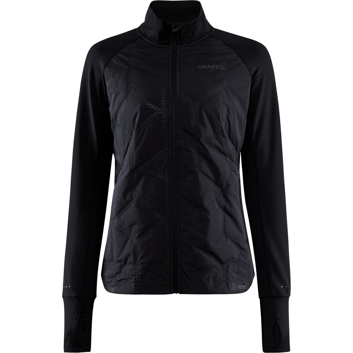 Die Craft Adv Subz Jacke 2 Damen ist eine fortschrittliche Laufjacke mit windschützender Ventair Front mit leichter Wattierung. Dieser Windstopper ist aus gebürstetem Jersey aus recyceltem Polyester gefertigt und hat Elasthan an den Ärmeln und am Rücken für zusätzliche Wärme und Komfort. Außerdem hat die Jacke einen getapten Saum an der Unterseite und einen Daumengriff an den Ärmelenden.