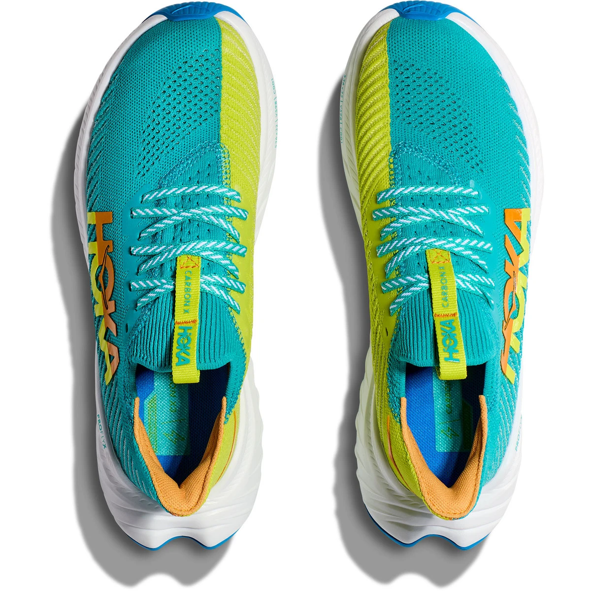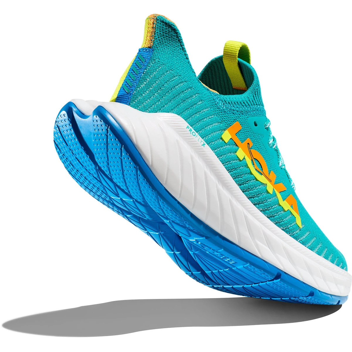 Die reaktionsfreudige Carbonfaserplatte und der aggressive Meta-Rocker sorgen für ein treibendes Laufgefühl, während die kräftigen, asymmetrischen Farben für ein aussagekräftiges Finish sorgen. Die EVA-Schaumstoffschicht in der Zwischensohle und der Außensohle sorgt für ein griffiges und reaktionsfreudiges Laufgefühl. Der HOKA Carbon X 3 lässt sich dank der erhöhten Fersenlasche an der Achillessehne leicht anziehen.