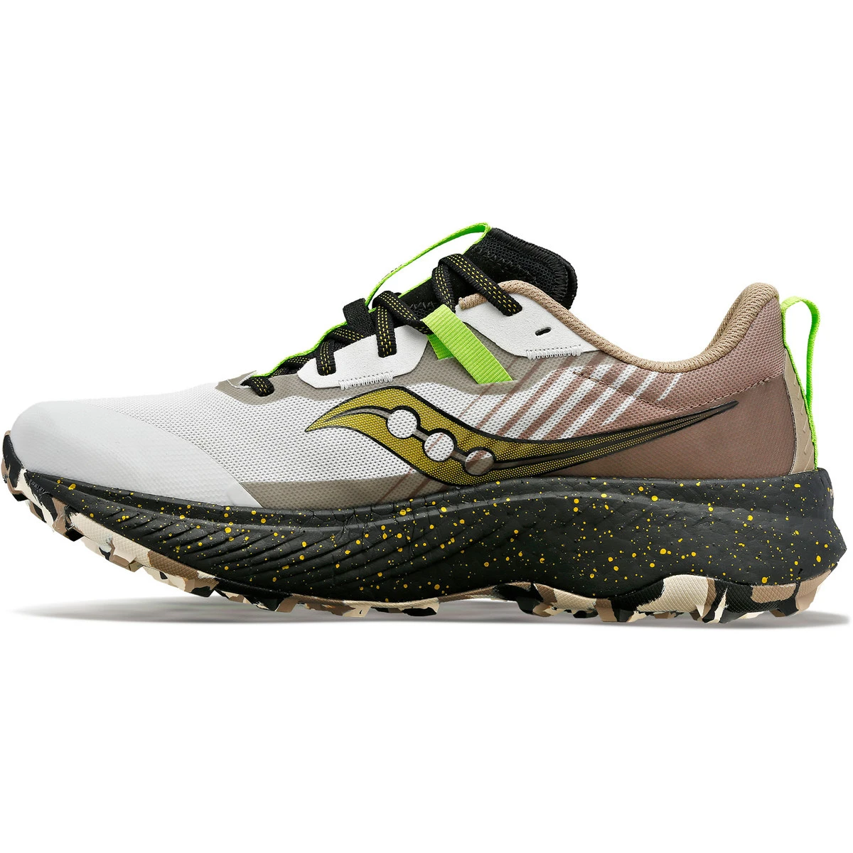 Der Saucony Endorphin Edge für Herren ist ein Trail-Schuh, der auf einer bewährten Formel für Geschwindigkeit basiert. Der Endorphin Edge verfügt über eine Carbonplatte, die für einen außergewöhnlichen Bodenkontakt sorgt und dich bei jedem Schritt vorwärts treibt. Dank des Obermaterials aus Mesh bleiben deine Füße frisch und kühl. Das Mesh ist leicht und leitet Feuchtigkeit effektiv von den Füßen weg. Dank des 6-mm-Leistens und der PWRTRAC-Laufsohle profitierst du von einem hervorragenden Grip auf jedem Untergrund.